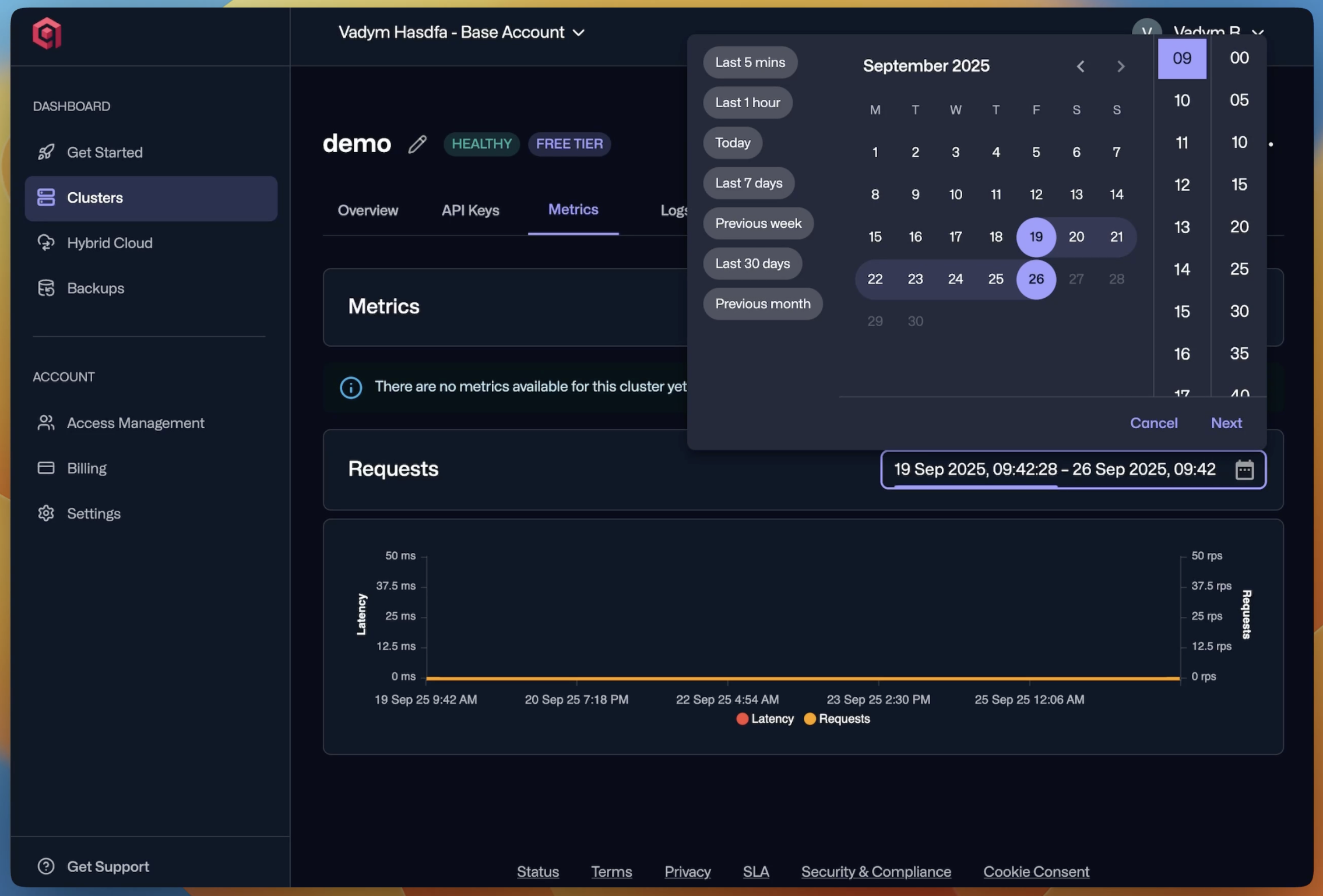 Qdrant achieved significant improvements in both development velocity and UX after adopting MUI. The implementation of the Date Range Picker was quick and elevated their date selection interface from simple presets to a robust system with options like "last 5 minutes," "last 1 hour," "today," and fully custom date ranges.